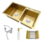 Dosador de sabão, Cesto escorredor ajustável, Válvula 4 1/2″, Válvula e tubulação do ladrão, Sifão |